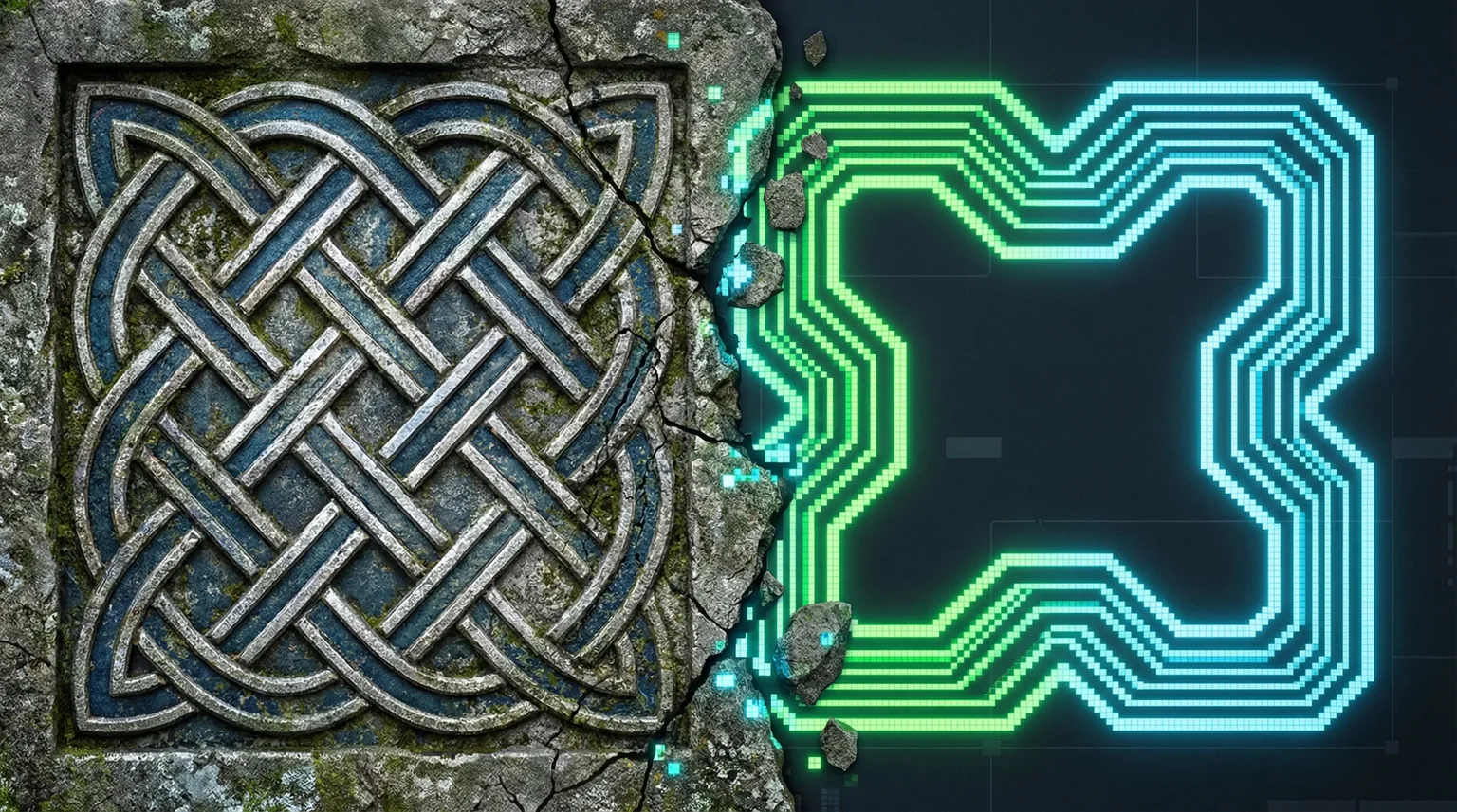 2. Inscription traditions share a desire for permanence, but differ in what they seek to make eternal. The Celtic stonemasons carved knots into high crosses to connect the mortal to the divine, the local to the universal. The blockchain mints hashes to preserve record. Both want the mark to last. But one reaches outward; the other seals inward.