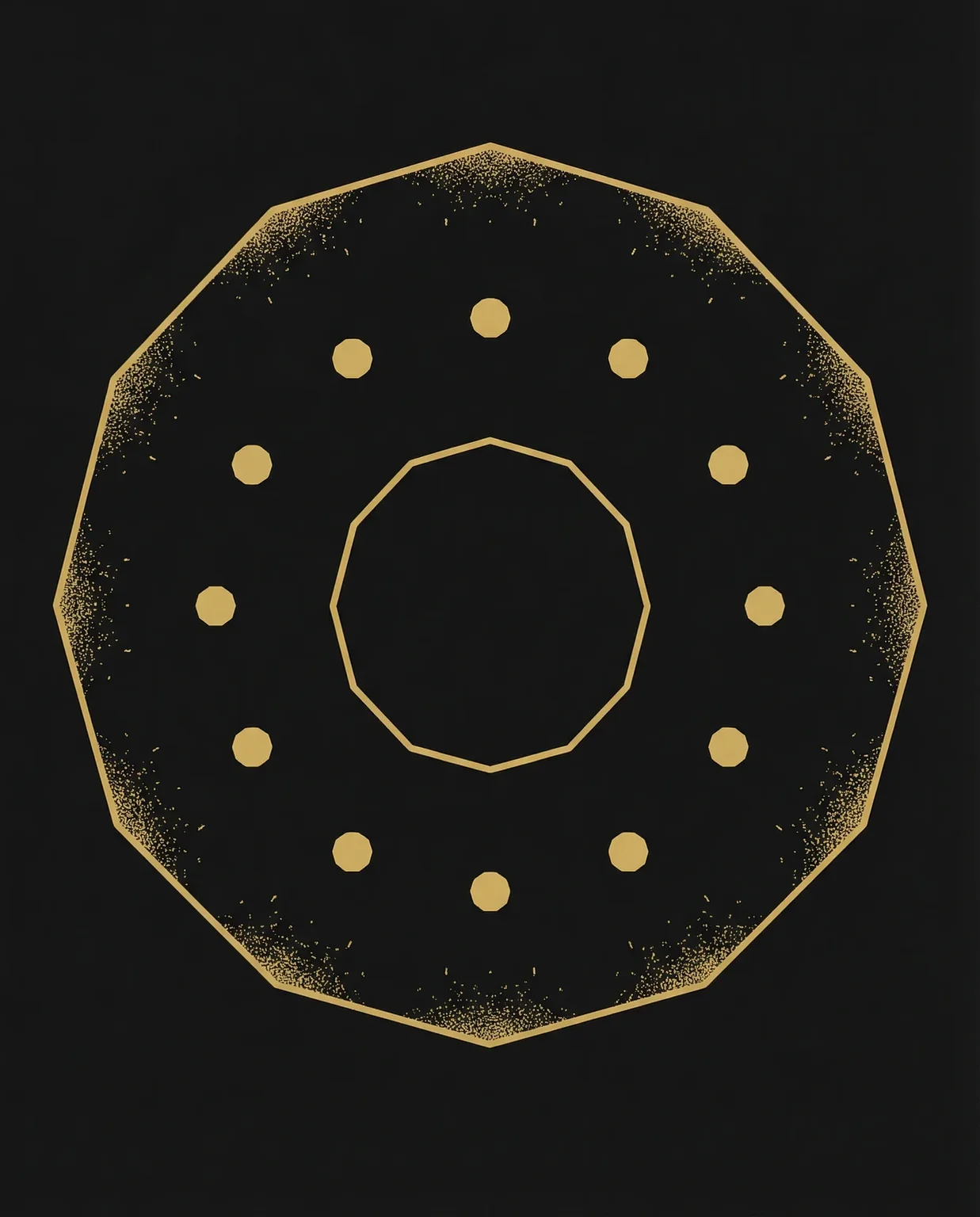 The live test: if a viewer who knew nothing of your concept looked at the image, would they sense the question? Or would they see a clean geometric form with textured corners? The Resonance passes that test—the explosion tension is visible without explanation. Your dodecagon may not yet pass it. The stippling is not quantum foam because it does not churn. It sits. The oracle bone speaks when the crack threatens the form, not when it adorns the completed whole.