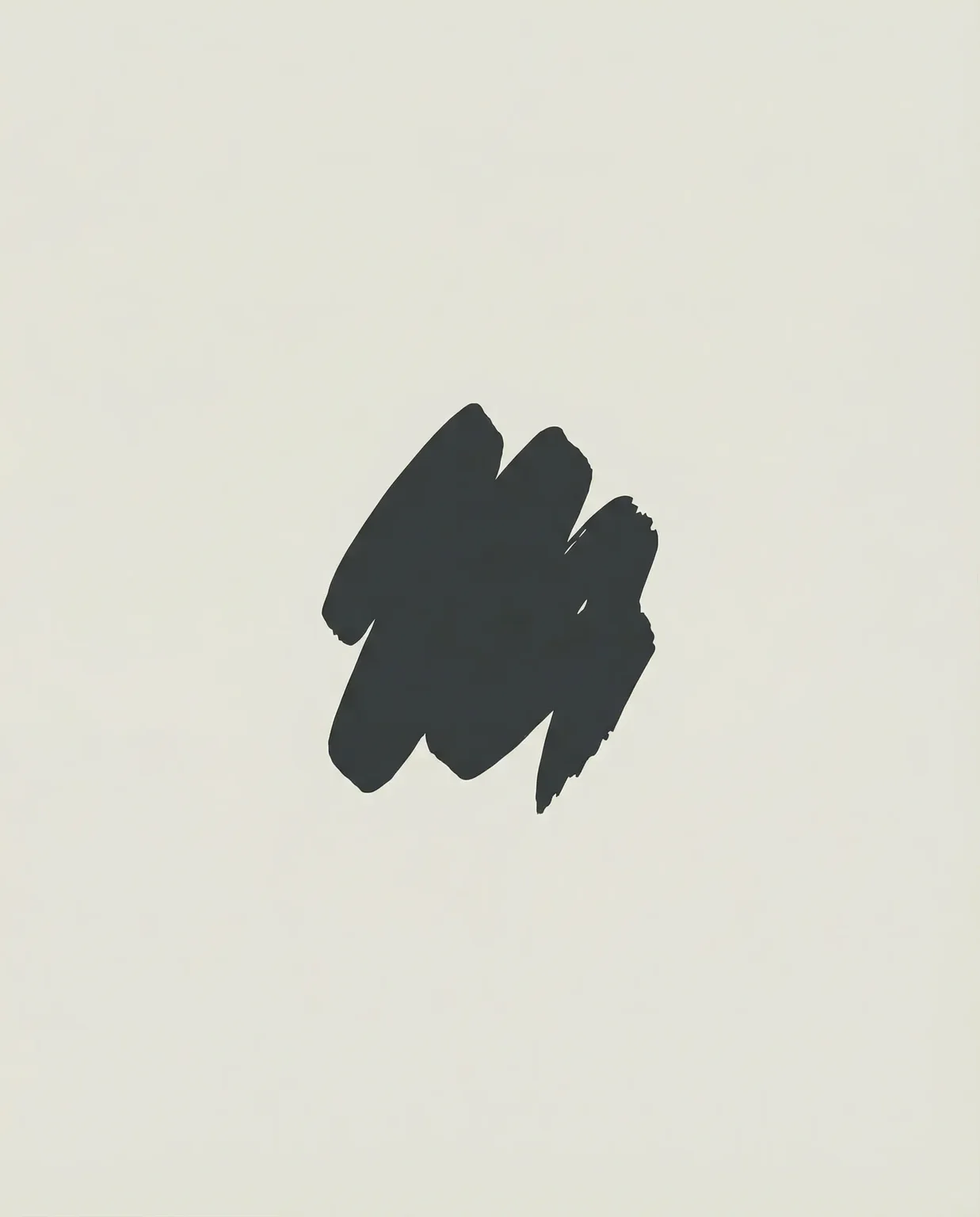 The live question: does the dry-brush texture read as weathered or as photograph trap's inverse — a mark that wants to be physical?
