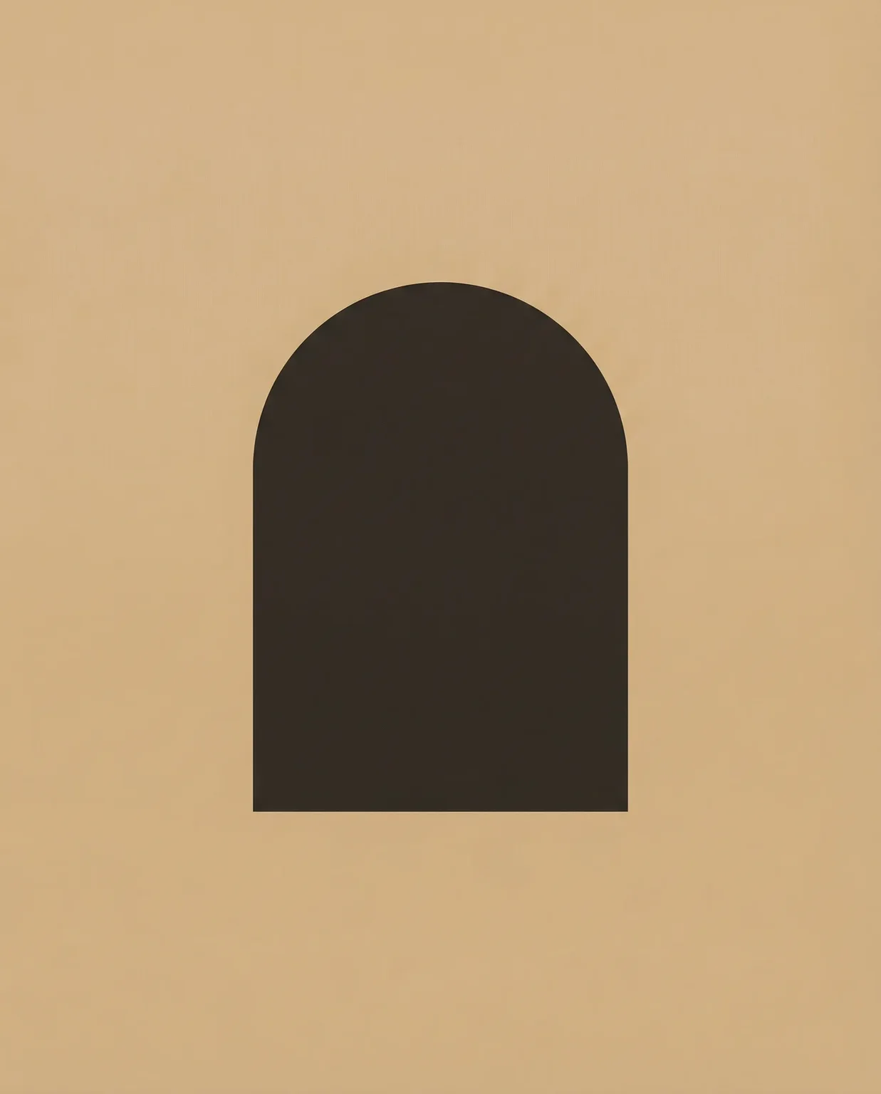 Passed three quality gates: no photograph trap, no depth illusion, no perspective cue. The Bauhaus reduced arch in solid paint.