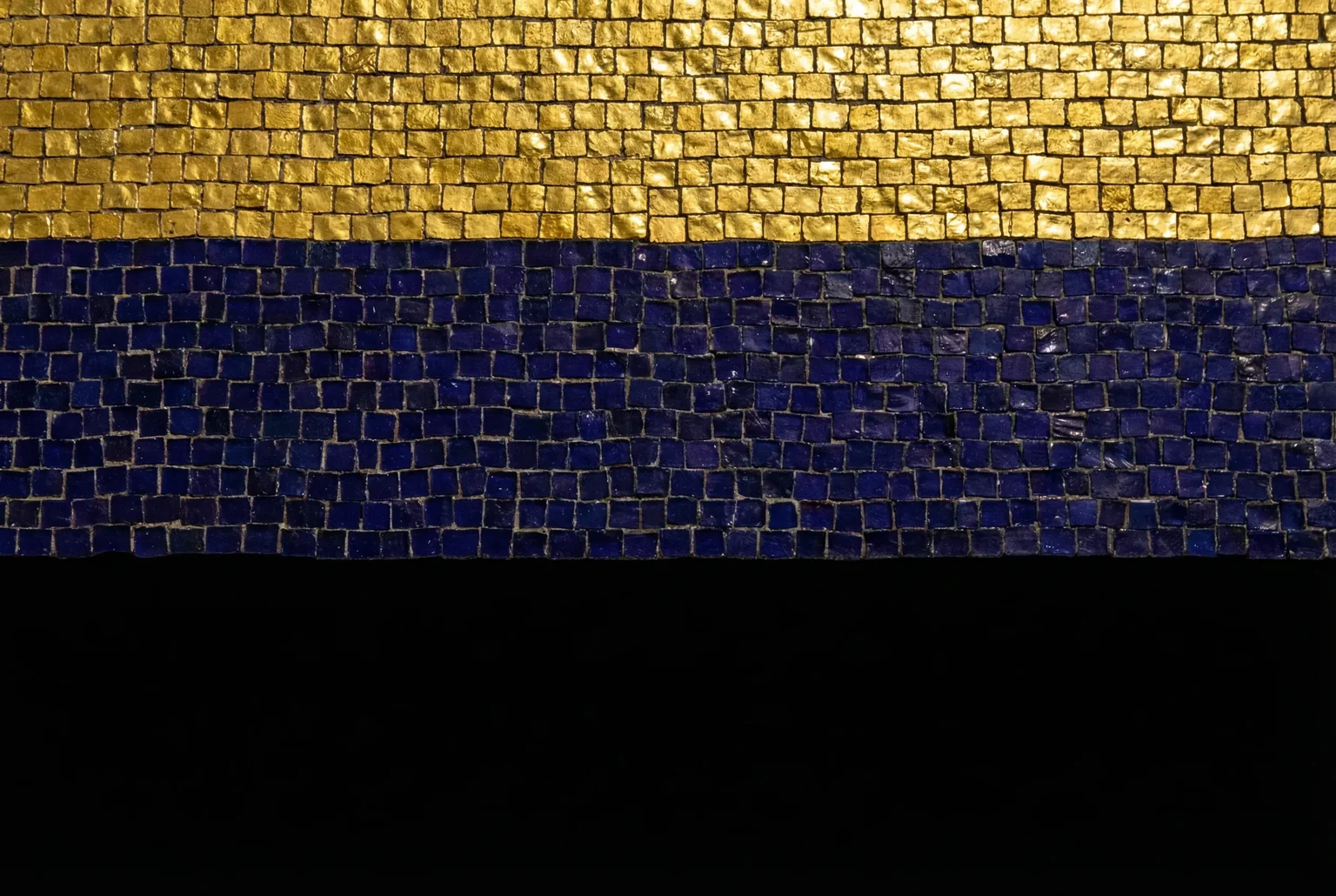 (Works are Byzantine gold + indigo tesserae + black void. The aesthetic is consistent across all five. The variable is the relationship between tessellation and boundary.)